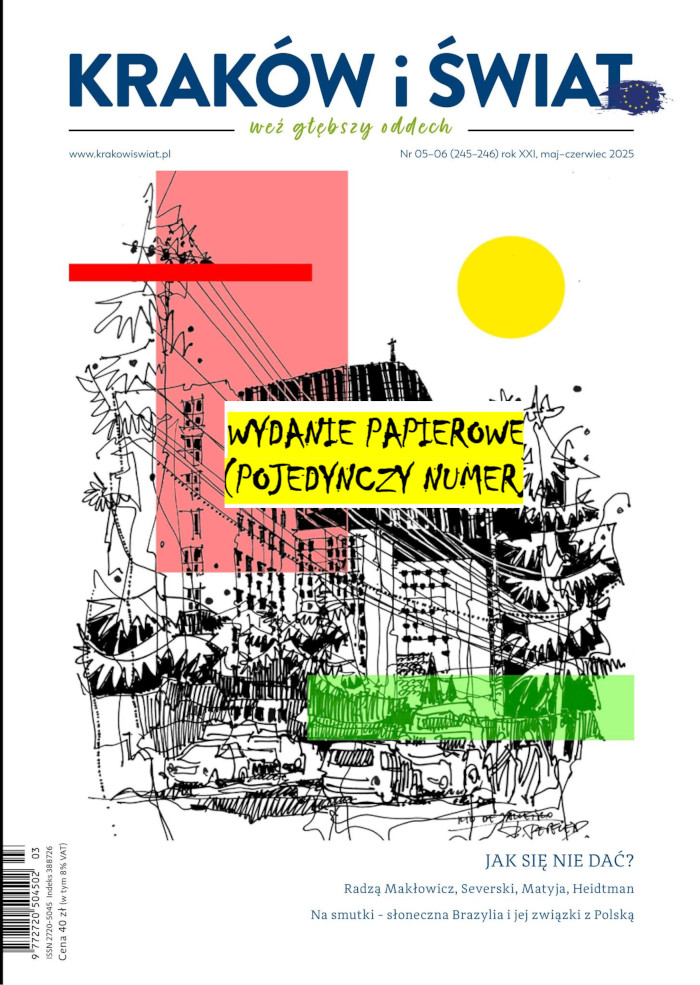 Jakikolwiek będzie, w tym numerze przeczytacie o tym, jak… się nie dać. W czasach trudnych, niepewnych, przebodźcowanych. W tym numerze zapraszamy bowiem do podróży po światach dających nadzieję. Rozmawiamy o duszy i… internecie z dr Joanną Heidtman. O ciele i mocy własnych wyborów z prof. Andrzejem Matyją. Przeczytacie o tym, czy uratuje nas kultura i sztuka, i o tym, jak pięknie w miłości łączą się wszystkie kolory tęczy (Michał i Monika z Teatru Barakah). O Europie opowiada nam Robert Makłowicz, a o tajemnicach i bezpieczeństwie kraju Vincent Severski. Estetycznie zachwycą Was fotografie tarnowskiego artysty Tomasza Sobczaka.